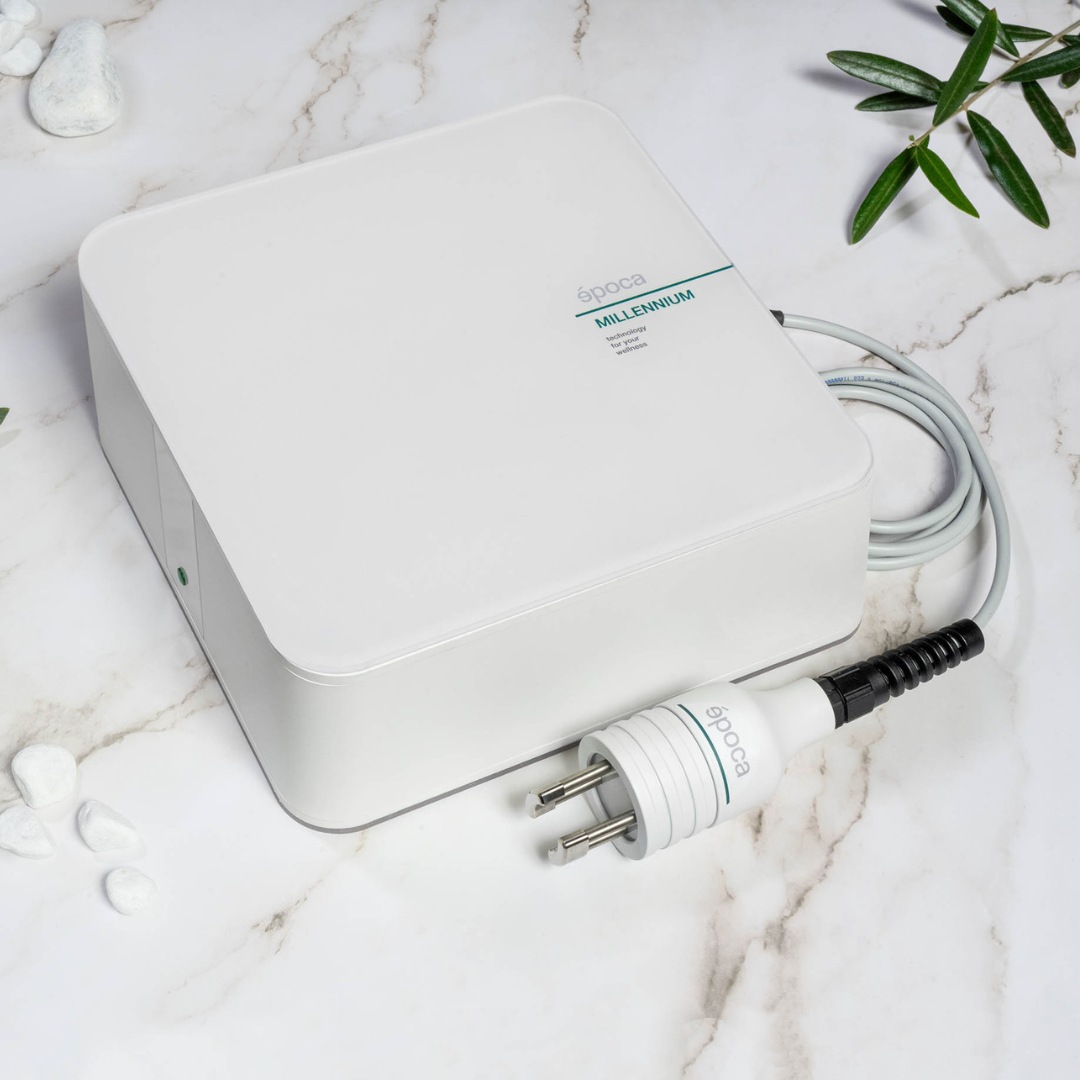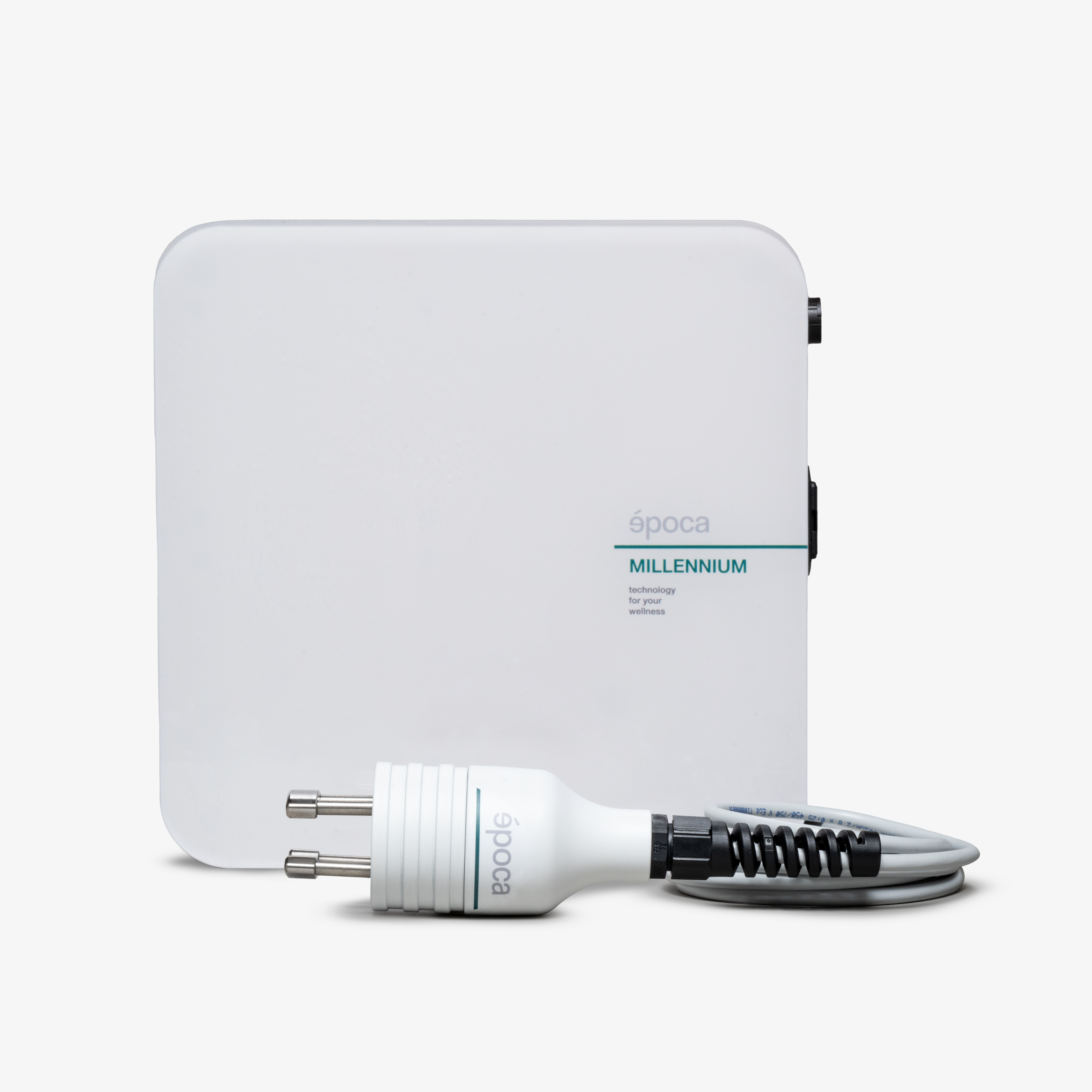 ÉPOCA MILLENNIUM è un dispositivo CE di derivazione medicale che, associato ai prodotti cosmetici della linea Época, favorisce il mantenimento e il ripristino del benessere fisico. Dispositivo per auto trattamento.